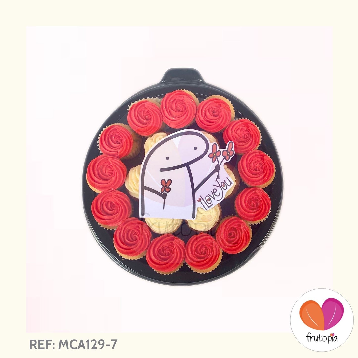Bandeja x 20 minicupcakes decorados con crema de mantequilla sabor a vainilla y mensaje en impresión comestible "I LOVE YOU"