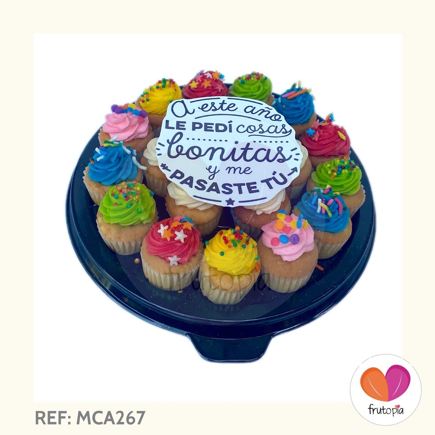 *Diámetro bandeja 20 cmx aprox. El tamaño de cada minicupcake es de 3,5 x 4 cms aprox