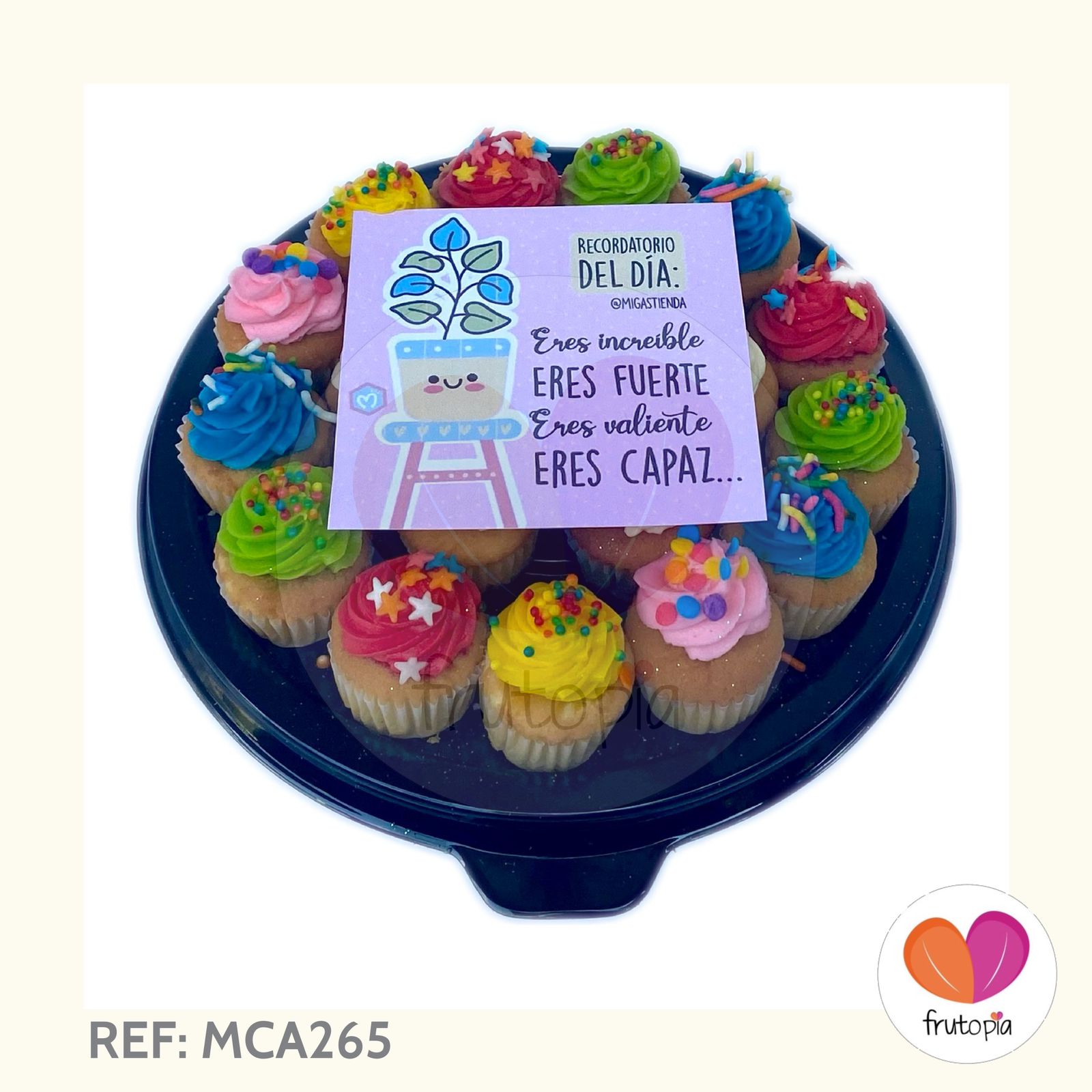 *Diámetro bandeja 20 cmx aprox. El tamaño de cada minicupcake es de 3,5 x 4 cms aprox