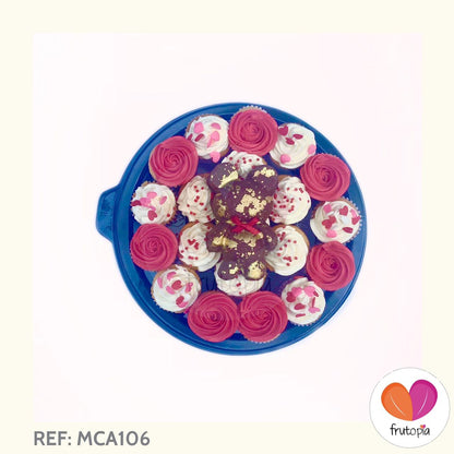 *Diámetro bandeja 20 cmx aprox. El tamaño de cada minicupcake es de 3,5 x 4 cms aprox