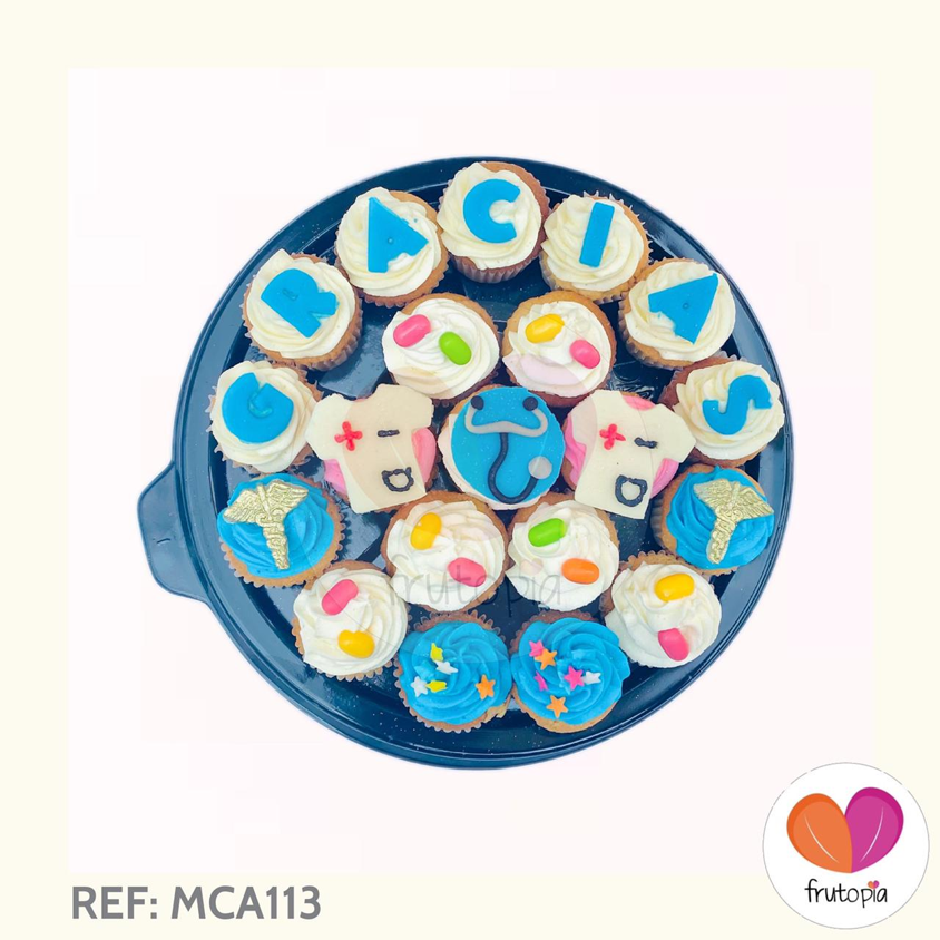 *Diámetro bandeja 20 cmx aprox. El tamaño de cada minicupcake es de 3,5 x 4 cms aprox