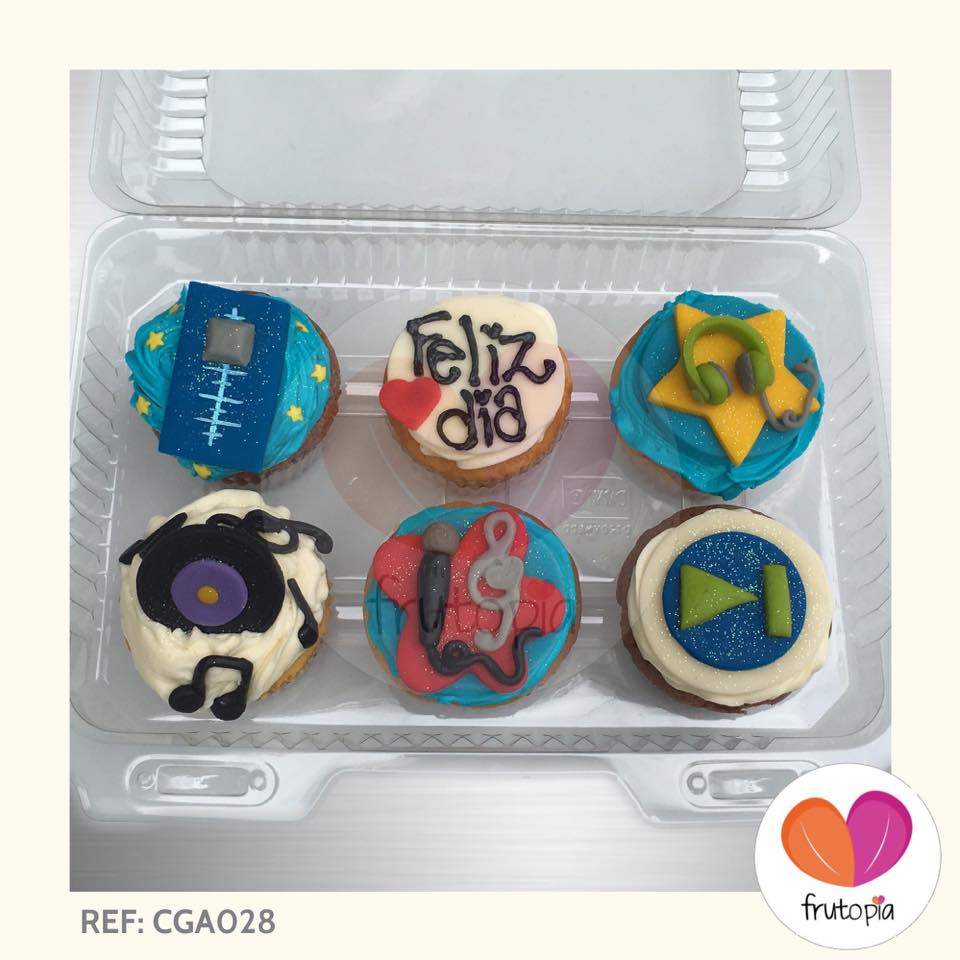 *Tamaño de cada cupcake: 6,5 x 7 cms aprox. Decorado con crema de mantequilla de vainilla, según la presentación con mazapán o impresión comestible. Sabor cupcake: vainilla.